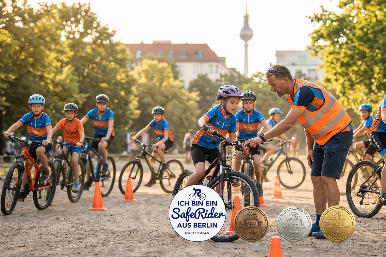 BIKE-FIT-Coaches bieten Fahrsicherheitstraining für radfahrende Schulkinder in Berlin an. Jetzt anfragen oder für unseren Newsletter registrieren!